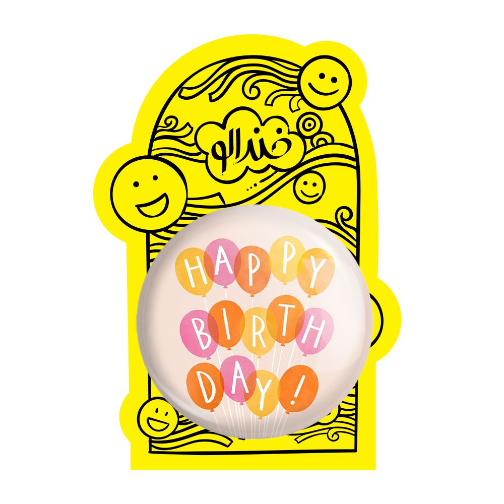 پیکسل بزرگ تولد خندالو با روکش سلفون حرارتی مات مخملی ضدخش و قطعه پشتی فلزی تولید می شود. قطعات پشت پیکسل های خندالو با سوزن یک تکه ثابت و بدون لغزش و جا به جایی، ایستایی بسیار خوبی دارند که این مهم در تولید پیکسل های 58 میلیمتری نیز رعایت شده است.