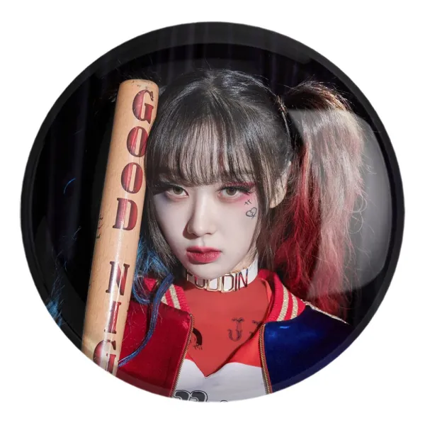 پیکسل بزرگ جیزل گروه گروه آسپا Aespa خندالو با روکش سلفون حرارتی مات مخملی ضدخش و قطعه پشتی فلزی تولید می شود. قطعات پشت پیکسل های خندالو با سوزن یک تکه ثابت و بدون لغزش و جا به جایی، ایستایی بسیار خوبی دارند که این مهم در تولید پیکسل های 58 میلیمتری نیز رعایت شده است.