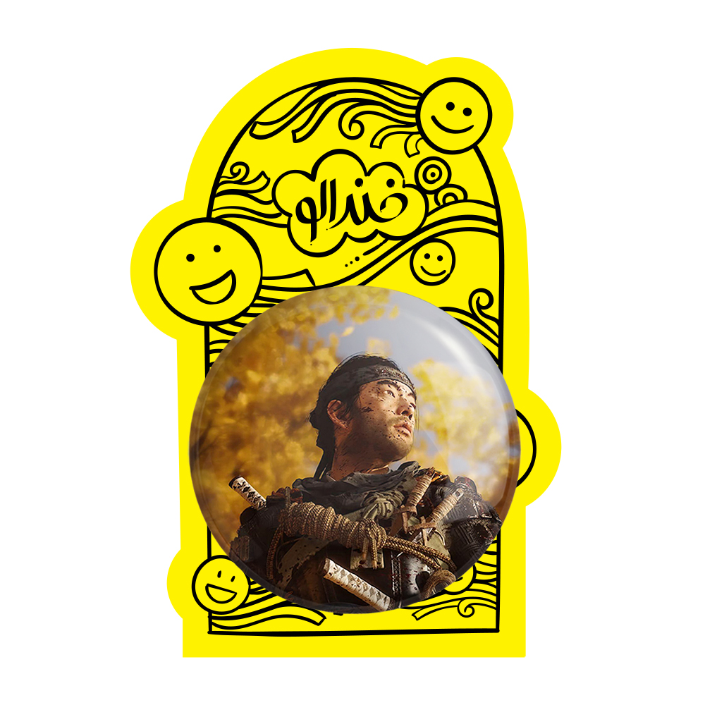 پیکسل بزرگ جین(گوست) گوست آف سوشیما خندالو با روکش سلفون حرارتی مات مخملی ضدخش و قطعه پشتی فلزی تولید می شود. قطعات پشت پیکسل های خندالو با سوزن یک تکه ثابت و بدون لغزش و جا به جایی، ایستایی بسیار خوبی دارند که این مهم در تولید پیکسل های 58 میلیمتری نیز رعایت شده است.