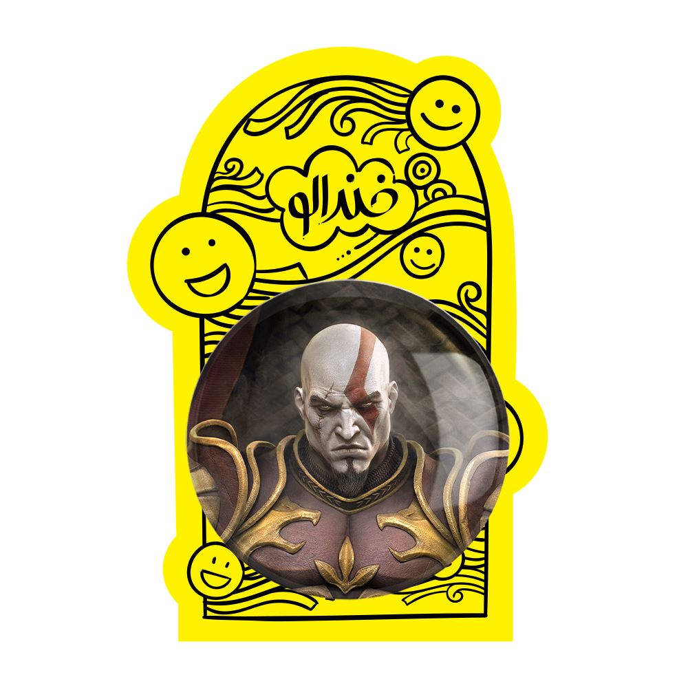 پیکسل بزرگ خدای جنگ God Of War خندالو با روکش سلفون حرارتی مات مخملی ضدخش و قطعه پشتی فلزی تولید می شود. قطعات پشت پیکسل های خندالو با سوزن یک تکه ثابت و بدون لغزش و جا به جایی، ایستایی بسیار خوبی دارند که این مهم در تولید پیکسل های 58 میلیمتری نیز رعایت شده است.