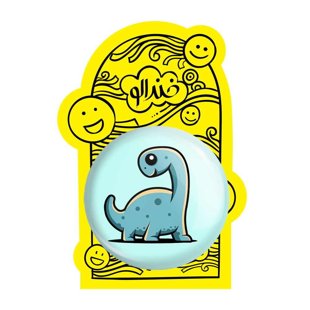 پیکسل بزرگ دایناسور بامزه خندالو با روکش سلفون حرارتی مات مخملی ضدخش و قطعه پشتی فلزی تولید می شود. قطعات پشت پیکسل های خندالو با سوزن یک تکه ثابت و بدون لغزش و جا به جایی، ایستایی بسیار خوبی دارند که این مهم در تولید پیکسل های 58 میلیمتری نیز رعایت شده است.
