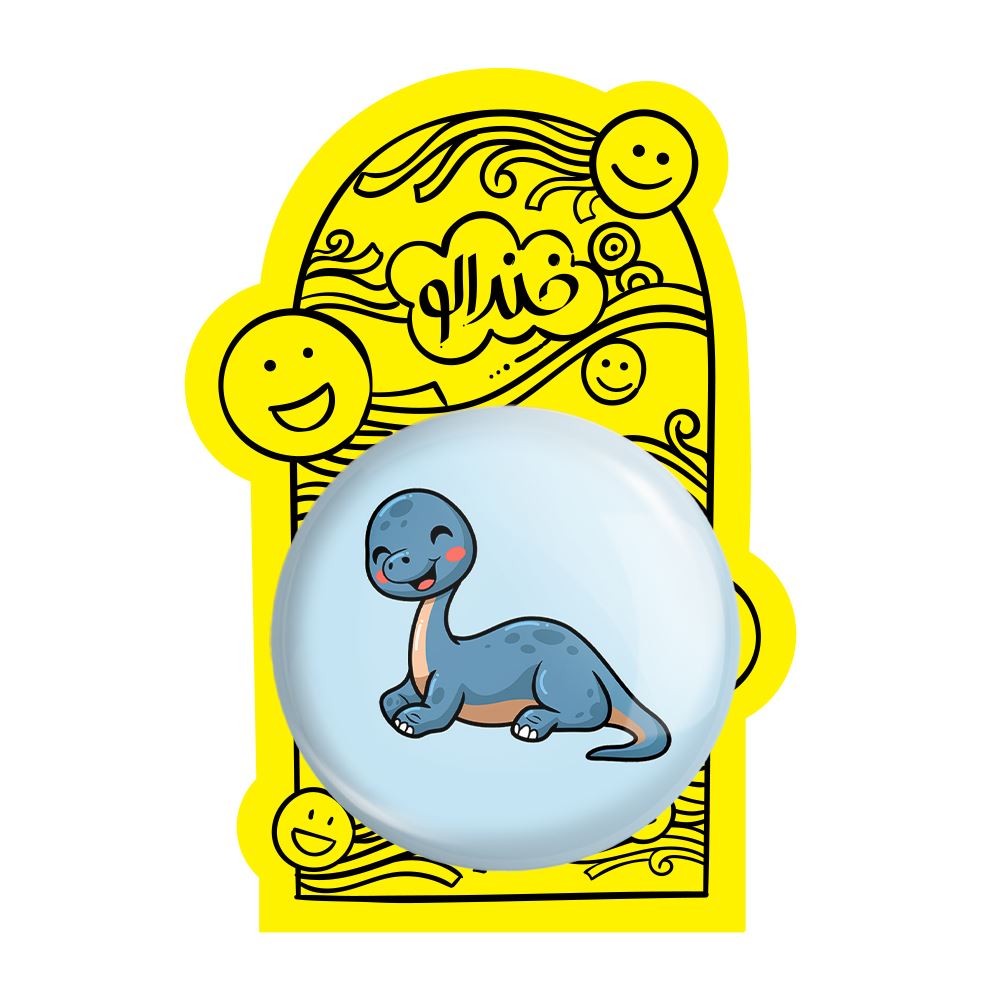 پیکسل بزرگ دایناسور بامزه خندالو با روکش سلفون حرارتی مات مخملی ضدخش و قطعه پشتی فلزی تولید می شود. قطعات پشت پیکسل های خندالو با سوزن یک تکه ثابت و بدون لغزش و جا به جایی، ایستایی بسیار خوبی دارند که این مهم در تولید پیکسل های 58 میلیمتری نیز رعایت شده است.