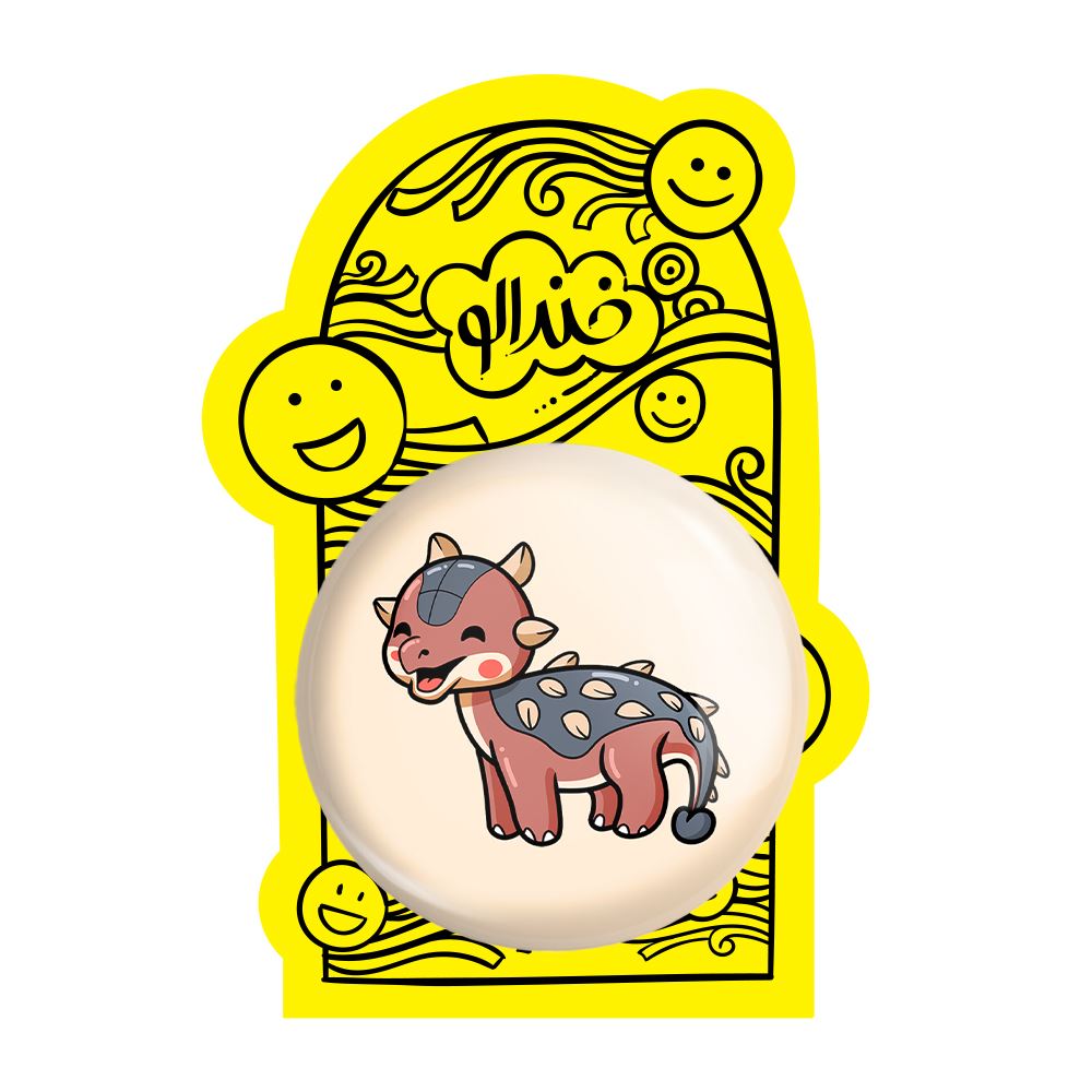 پیکسل بزرگ دایناسور بامزه خندالو با روکش سلفون حرارتی مات مخملی ضدخش و قطعه پشتی فلزی تولید می شود. قطعات پشت پیکسل های خندالو با سوزن یک تکه ثابت و بدون لغزش و جا به جایی، ایستایی بسیار خوبی دارند که این مهم در تولید پیکسل های 58 میلیمتری نیز رعایت شده است.