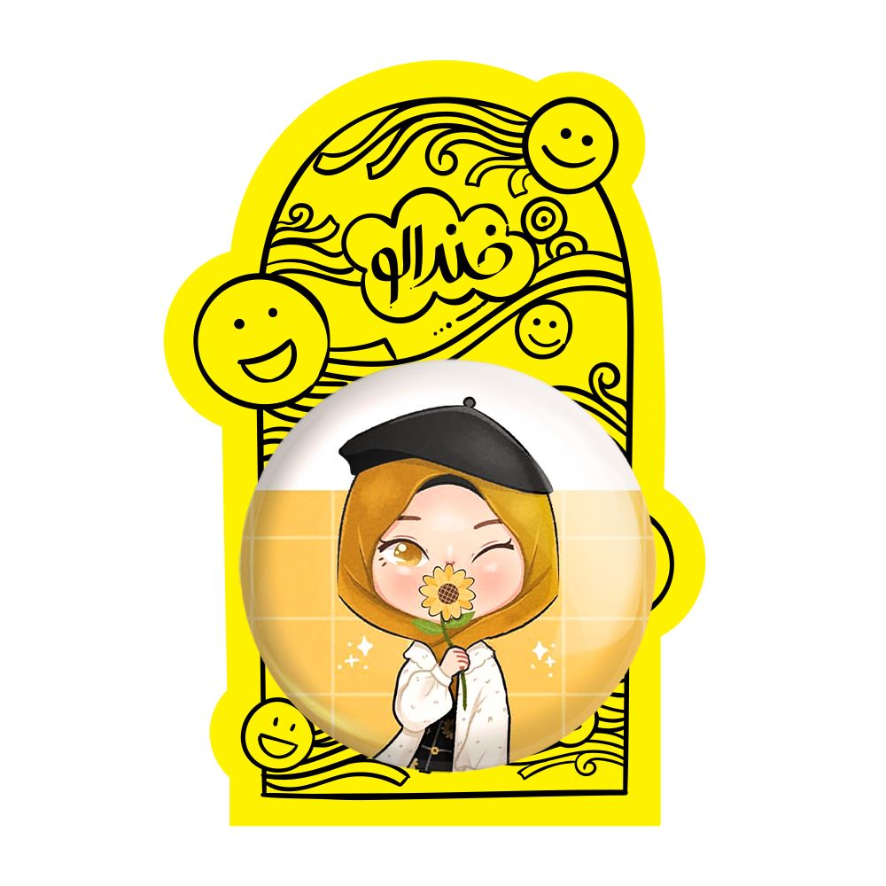 پیکسل بزرگ دخترانه باحجاب خندالو با روکش سلفون حرارتی مات مخملی ضدخش و قطعه پشتی فلزی تولید می شود. قطعات پشت پیکسل های خندالو با سوزن یک تکه ثابت و بدون لغزش و جا به جایی، ایستایی بسیار خوبی دارند که این مهم در تولید پیکسل های 58 میلیمتری نیز رعایت شده است.