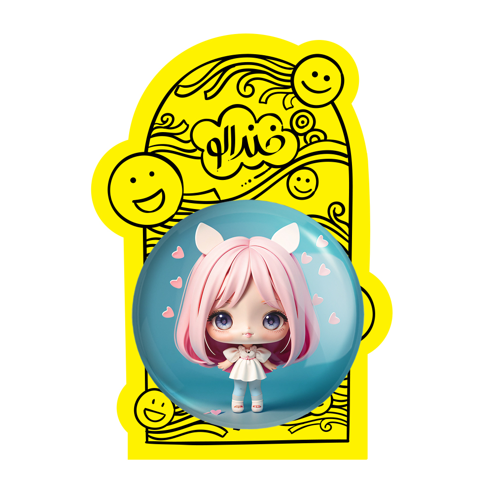 پیکسل بزرگ دخترانه (Girlish) خندالو با روکش سلفون حرارتی مات مخملی ضدخش و قطعه پشتی فلزی تولید می شود. قطعات پشت پیکسل های خندالو با سوزن یک تکه ثابت و بدون لغزش و جا به جایی، ایستایی بسیار خوبی دارند که این مهم در تولید پیکسل های 58 میلیمتری نیز رعایت شده است.