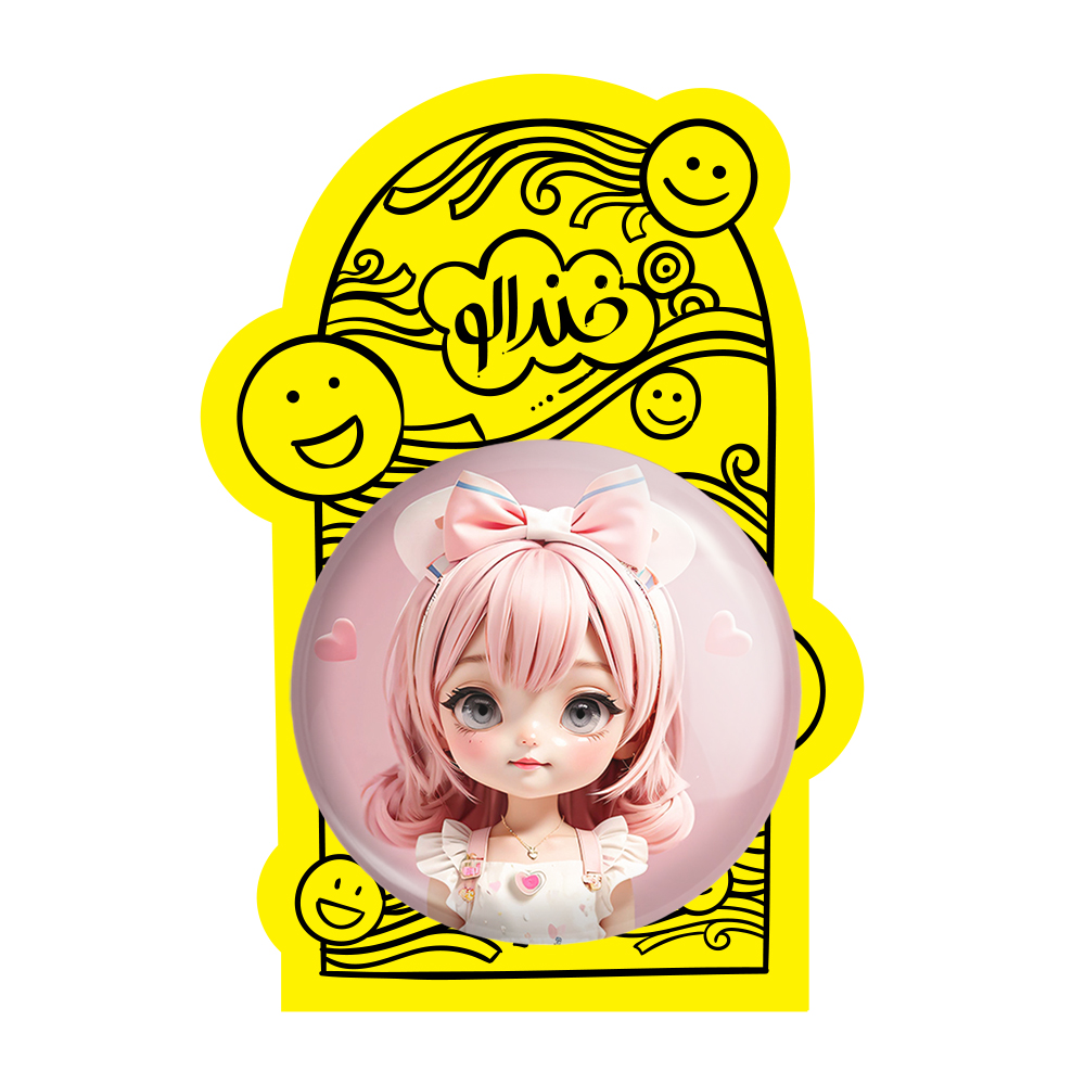 پیکسل بزرگ دخترانه (Girlish) خندالو با روکش سلفون حرارتی مات مخملی ضدخش و قطعه پشتی فلزی تولید می شود. قطعات پشت پیکسل های خندالو با سوزن یک تکه ثابت و بدون لغزش و جا به جایی، ایستایی بسیار خوبی دارند که این مهم در تولید پیکسل های 58 میلیمتری نیز رعایت شده است.