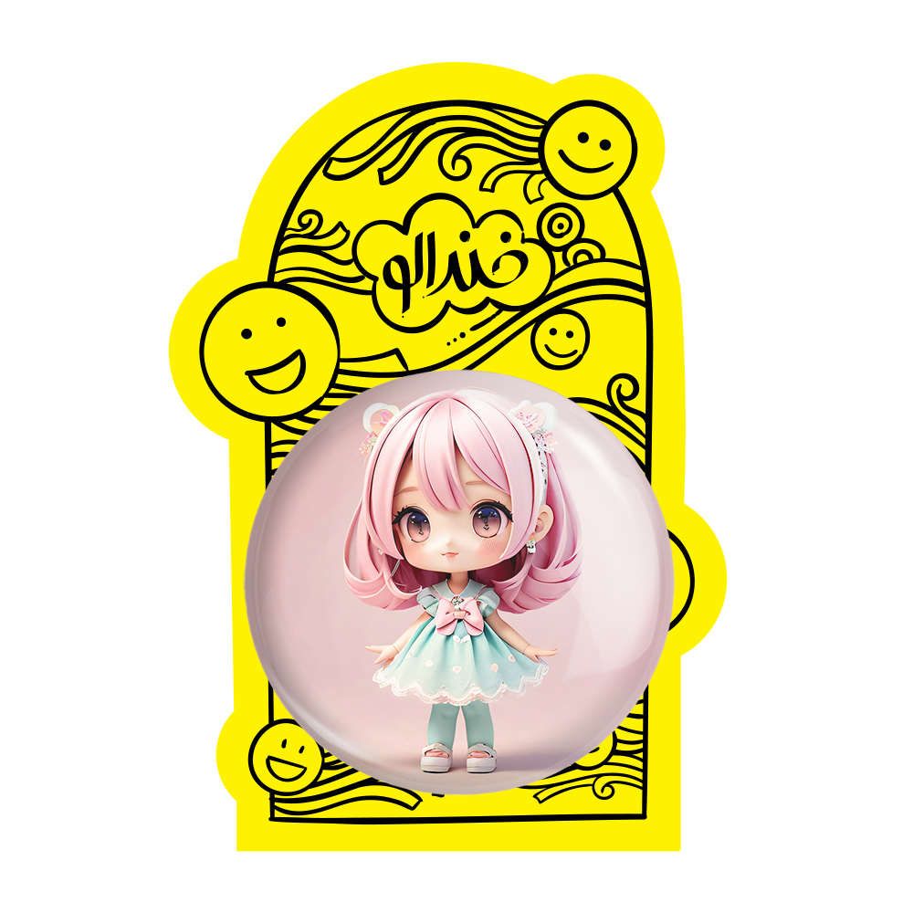 پیکسل بزرگ دخترانه (Girlish) خندالو با روکش سلفون حرارتی مات مخملی ضدخش و قطعه پشتی فلزی تولید می شود. قطعات پشت پیکسل های خندالو با سوزن یک تکه ثابت و بدون لغزش و جا به جایی، ایستایی بسیار خوبی دارند که این مهم در تولید پیکسل های 58 میلیمتری نیز رعایت شده است.