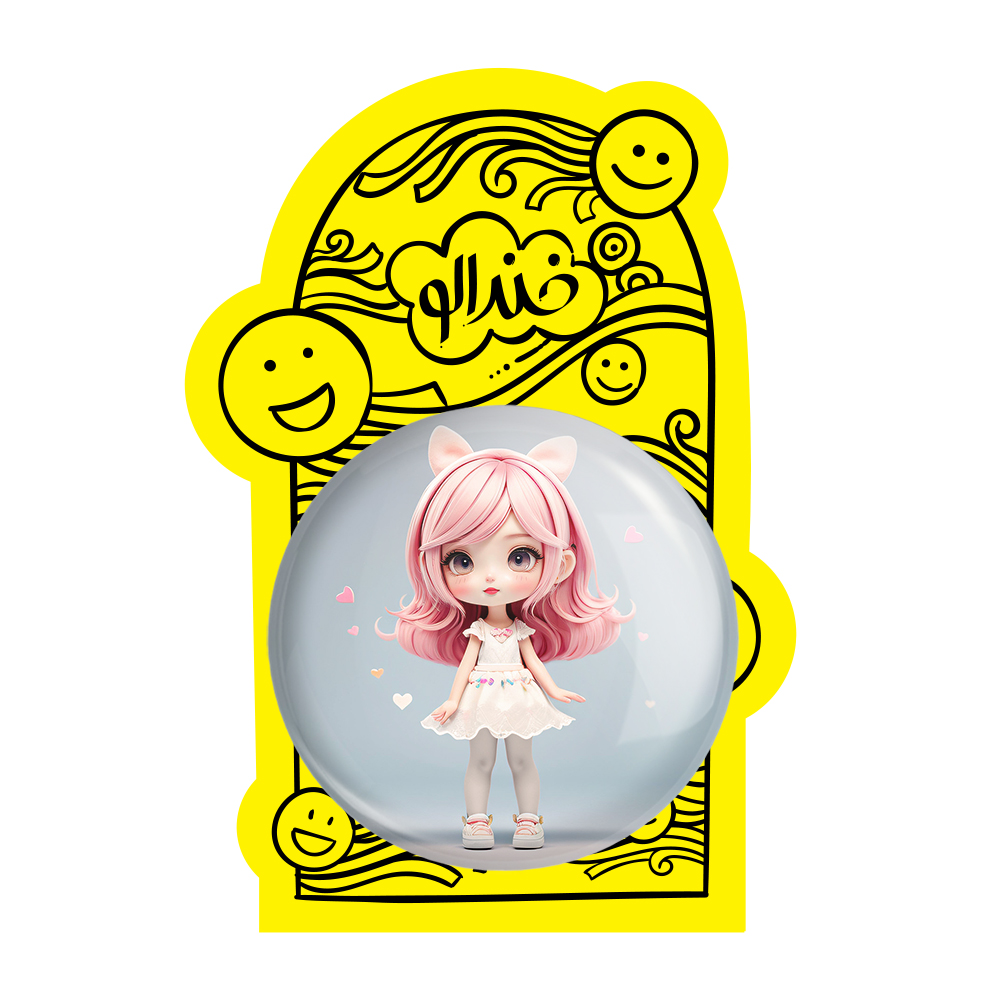 پیکسل بزرگ دخترانه (Girlish) خندالو با روکش سلفون حرارتی مات مخملی ضدخش و قطعه پشتی فلزی تولید می شود. قطعات پشت پیکسل های خندالو با سوزن یک تکه ثابت و بدون لغزش و جا به جایی، ایستایی بسیار خوبی دارند که این مهم در تولید پیکسل های 58 میلیمتری نیز رعایت شده است.