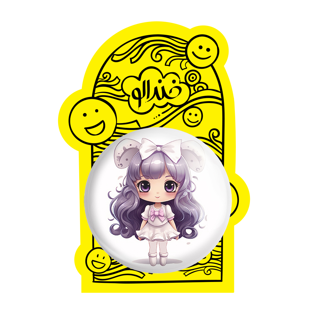 پیکسل بزرگ دخترانه (Girlish) خندالو با روکش سلفون حرارتی مات مخملی ضدخش و قطعه پشتی فلزی تولید می شود. قطعات پشت پیکسل های خندالو با سوزن یک تکه ثابت و بدون لغزش و جا به جایی، ایستایی بسیار خوبی دارند که این مهم در تولید پیکسل های 58 میلیمتری نیز رعایت شده است.