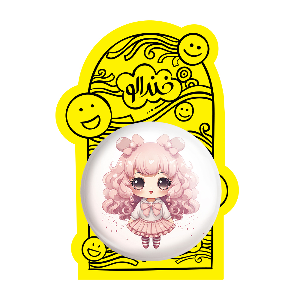 پیکسل بزرگ دخترانه (Girlish) خندالو با روکش سلفون حرارتی مات مخملی ضدخش و قطعه پشتی فلزی تولید می شود. قطعات پشت پیکسل های خندالو با سوزن یک تکه ثابت و بدون لغزش و جا به جایی، ایستایی بسیار خوبی دارند که این مهم در تولید پیکسل های 58 میلیمتری نیز رعایت شده است.