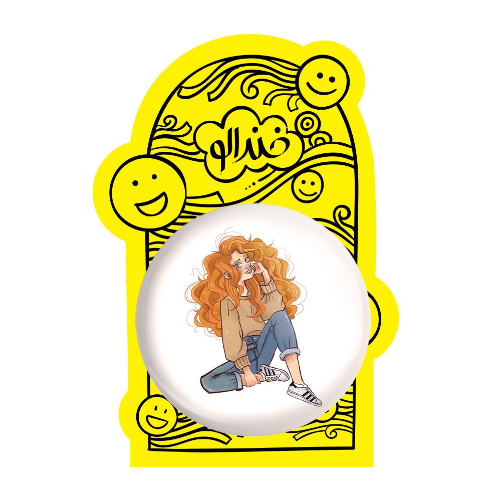 پیکسل بزرگ دختر مو فرفری خندالو با روکش سلفون حرارتی مات مخملی ضدخش و قطعه پشتی فلزی تولید می شود. قطعات پشت پیکسل های خندالو با سوزن یک تکه ثابت و بدون لغزش و جا به جایی، ایستایی بسیار خوبی دارند که این مهم در تولید پیکسل های 58 میلیمتری نیز رعایت شده است.