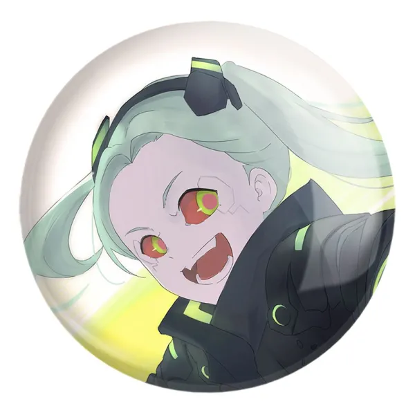 پیکسل بزرگ ربکا انیمه سایبر پانک Cyberpunk خندالو با روکش سلفون حرارتی مات مخملی ضدخش و قطعه پشتی فلزی تولید می شود. قطعات پشت پیکسل های خندالو با سوزن یک تکه ثابت و بدون لغزش و جا به جایی، ایستایی بسیار خوبی دارند که این مهم در تولید پیکسل های 58 میلیمتری نیز رعایت شده است.