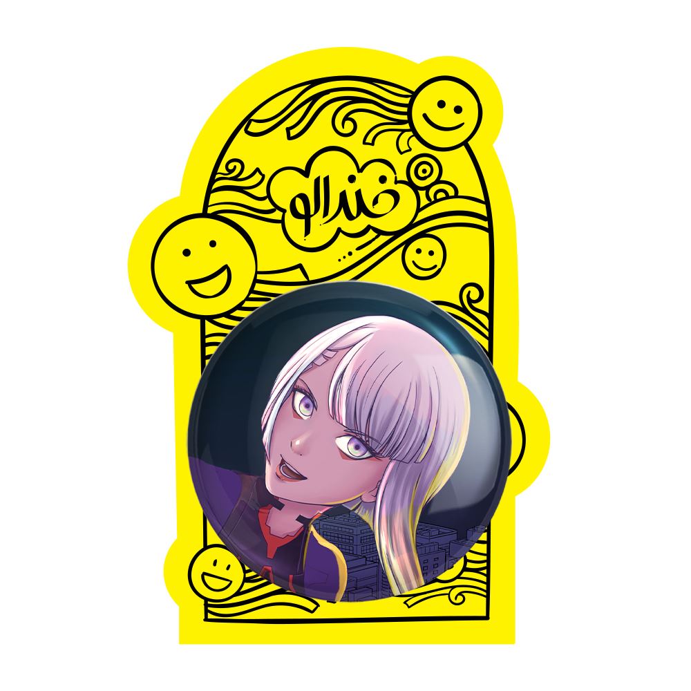 پیکسل بزرگ ربکا انیمه سایبر پانک Cyberpunk خندالو با روکش سلفون حرارتی مات مخملی ضدخش و قطعه پشتی فلزی تولید می شود. قطعات پشت پیکسل های خندالو با سوزن یک تکه ثابت و بدون لغزش و جا به جایی، ایستایی بسیار خوبی دارند که این مهم در تولید پیکسل های 58 میلیمتری نیز رعایت شده است.