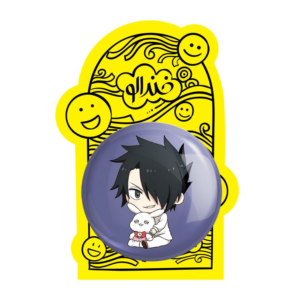 پیکسل بزرگ ری انیمه ناکجا آباد موعود Promised Neverland خندالو با روکش سلفون حرارتی مات مخملی ضدخش و قطعه پشتی فلزی تولید می شود. قطعات پشت پیکسل های خندالو با سوزن یک تکه ثابت و بدون لغزش و جا به جایی، ایستایی بسیار خوبی دارند که این مهم در تولید پیکسل های 58 میلیمتری نیز رعایت شده است.