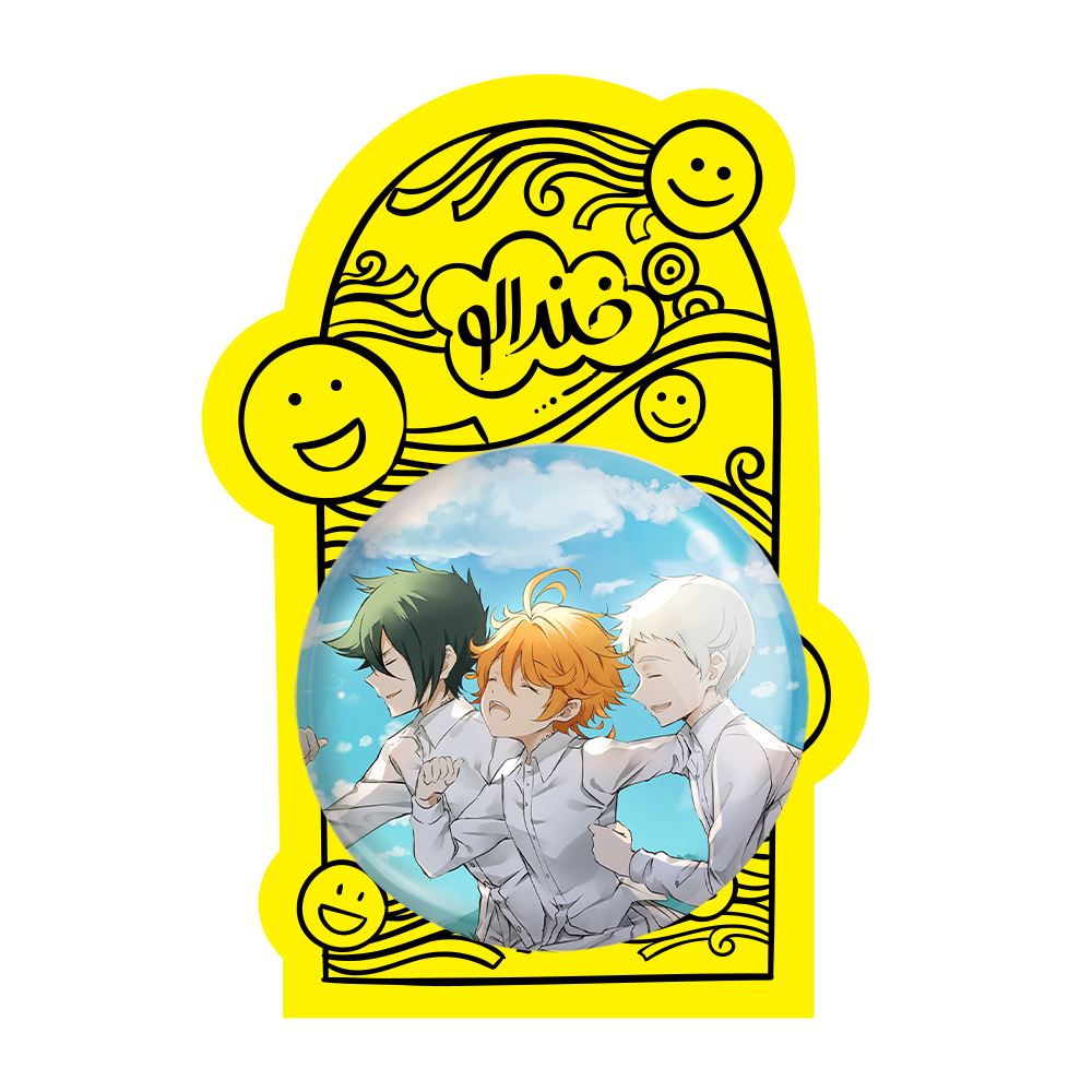پیکسل بزرگ ری و اما و نورمن انیمه ناکجاآباد موعود   خندالو با روکش سلفون حرارتی مات مخملی ضدخش و قطعه پشتی فلزی تولید می شود. قطعات پشت پیکسل های خندالو با سوزن یک تکه ثابت و بدون لغزش و جا به جایی، ایستایی بسیار خوبی دارند که این مهم در تولید پیکسل های 58 میلیمتری نیز رعایت شده است.