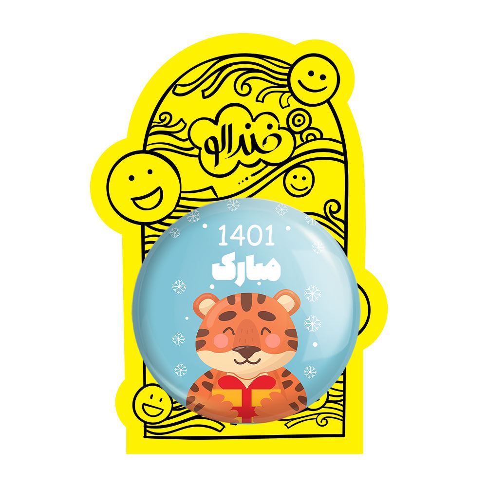 پیکسل بزرگ سال ببر خندالو با روکش سلفون حرارتی مات مخملی ضدخش و قطعه پشتی فلزی تولید می شود. قطعات پشت پیکسل های خندالو با سوزن یک تکه ثابت و بدون لغزش و جا به جایی، ایستایی بسیار خوبی دارند که این مهم در تولید پیکسل های 58 میلیمتری نیز رعایت شده است.