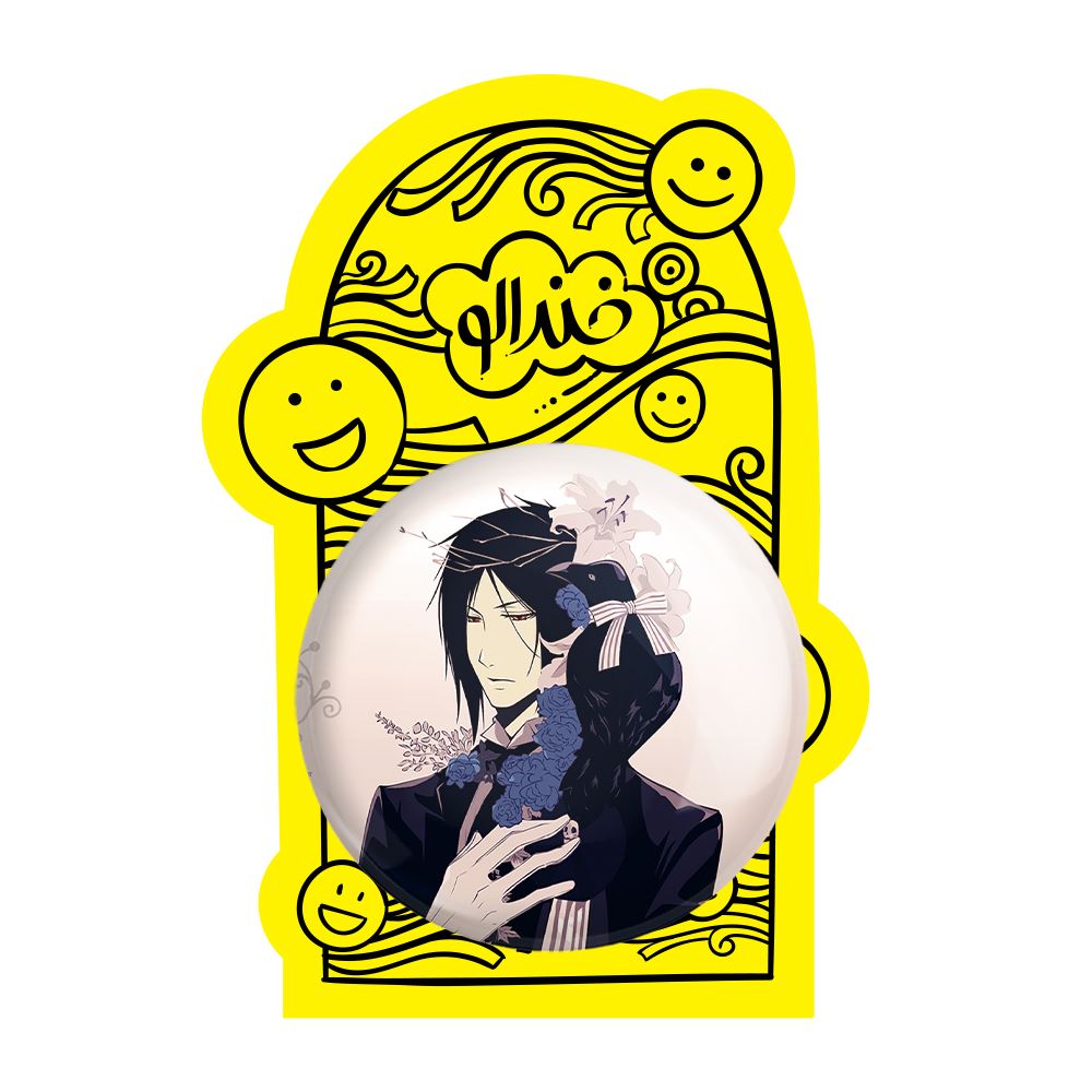 پیکسل بزرگ سباستین انیمه خادم سیاه Black Butler خندالو با روکش سلفون حرارتی مات مخملی ضدخش و قطعه پشتی فلزی تولید می شود. قطعات پشت پیکسل های خندالو با سوزن یک تکه ثابت و بدون لغزش و جا به جایی، ایستایی بسیار خوبی دارند که این مهم در تولید پیکسل های 58 میلیمتری نیز رعایت شده است.