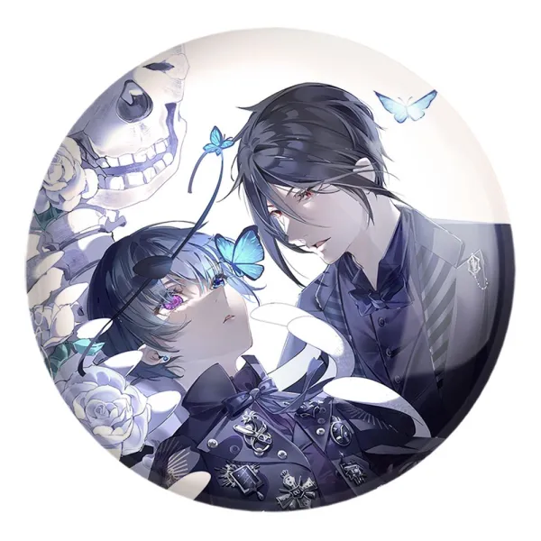 پیکسل بزرگ سباستین و شیل انیمه خادم سیاه Black Butler خندالو با روکش سلفون حرارتی مات مخملی ضدخش و قطعه پشتی فلزی تولید می شود. قطعات پشت پیکسل های خندالو با سوزن یک تکه ثابت و بدون لغزش و جا به جایی، ایستایی بسیار خوبی دارند که این مهم در تولید پیکسل های 58 میلیمتری نیز رعایت شده است.