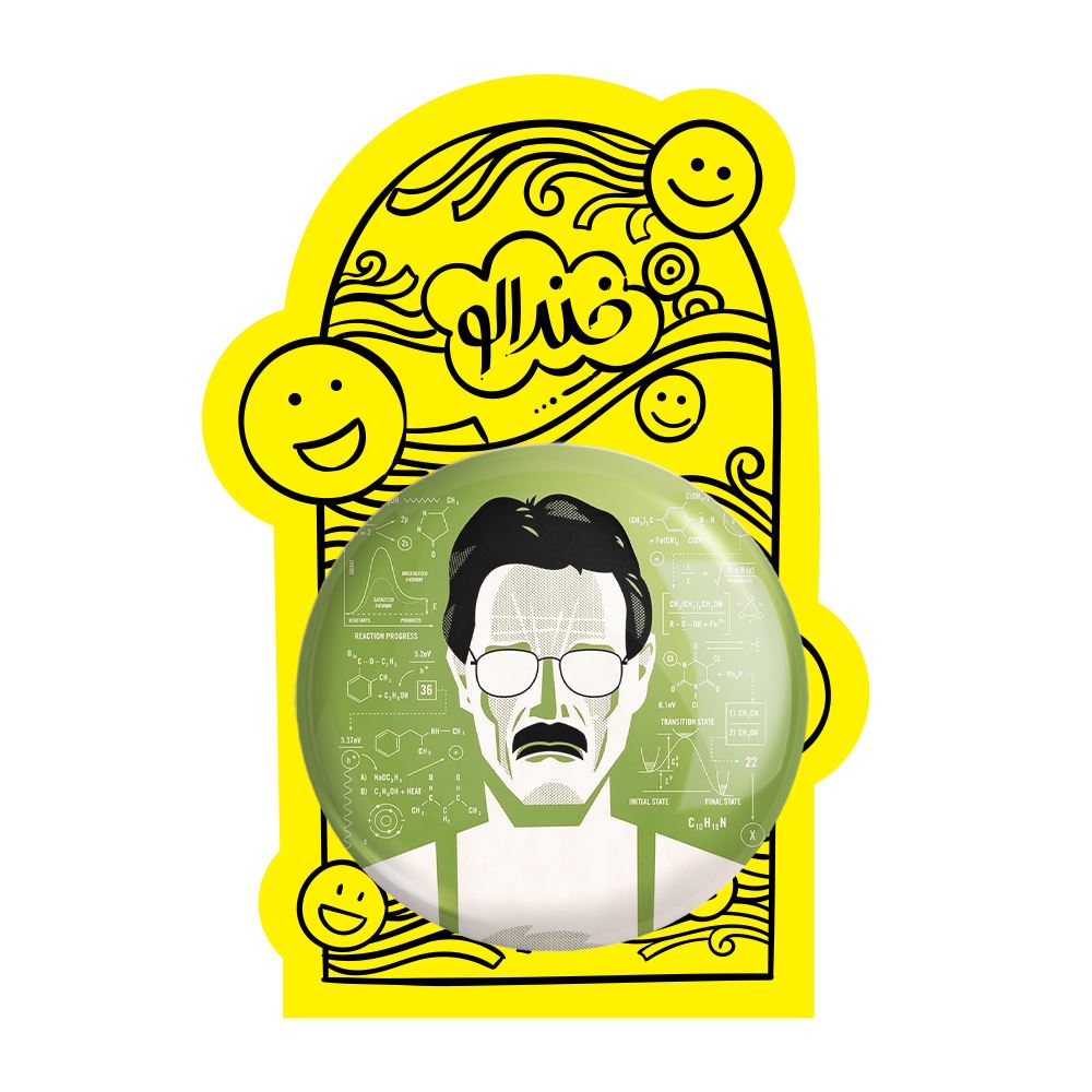 پیکسل بزرگ سریال بریکینگ بد Breaking Bad خندالو با روکش سلفون حرارتی مات مخملی ضدخش و قطعه پشتی فلزی تولید می شود. قطعات پشت پیکسل های خندالو با سوزن یک تکه ثابت و بدون لغزش و جا به جایی، ایستایی بسیار خوبی دارند که این مهم در تولید پیکسل های 58 میلیمتری نیز رعایت شده است.