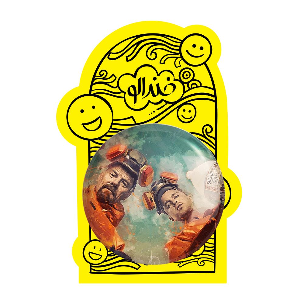 پیکسل بزرگ سریال بریکینگ بد Breaking Bad خندالو با روکش سلفون حرارتی مات مخملی ضدخش و قطعه پشتی فلزی تولید می شود. قطعات پشت پیکسل های خندالو با سوزن یک تکه ثابت و بدون لغزش و جا به جایی، ایستایی بسیار خوبی دارند که این مهم در تولید پیکسل های 58 میلیمتری نیز رعایت شده است.