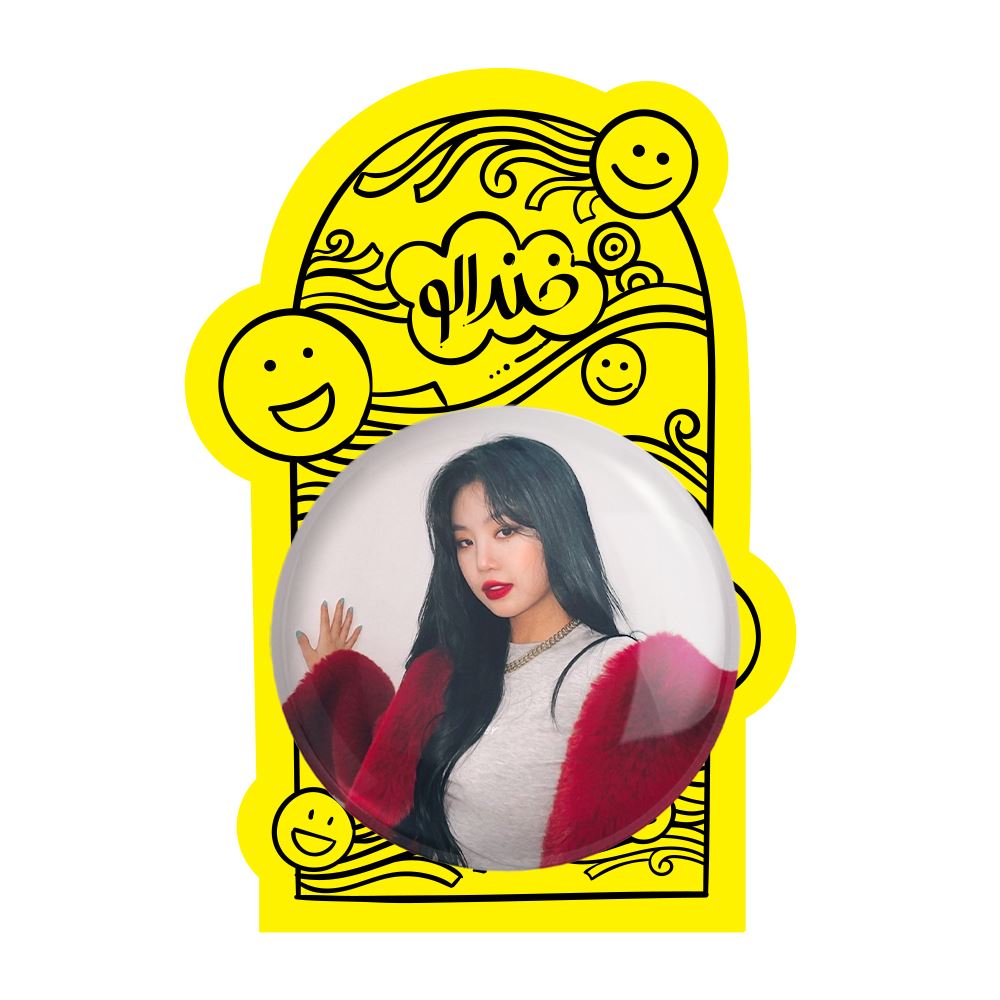 پیکسل بزرگ سوجین گروه جی آیدل GIdle خندالو با روکش سلفون حرارتی مات مخملی ضدخش و قطعه پشتی فلزی تولید می شود. قطعات پشت پیکسل های خندالو با سوزن یک تکه ثابت و بدون لغزش و جا به جایی، ایستایی بسیار خوبی دارند که این مهم در تولید پیکسل های 58 میلیمتری نیز رعایت شده است.