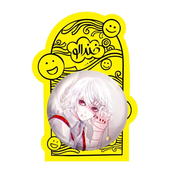 پیکسل بزرگ سوزویا جوزو انیمه توکیو غول Tokyo Ghoul خندالو با روکش سلفون حرارتی مات مخملی ضدخش و قطعه پشتی فلزی تولید می شود. قطعات پشت پیکسل های خندالو با سوزن یک تکه ثابت و بدون لغزش و جا به جایی، ایستایی بسیار خوبی دارند که این مهم در تولید پیکسل های 58 میلیمتری نیز رعایت شده است.
