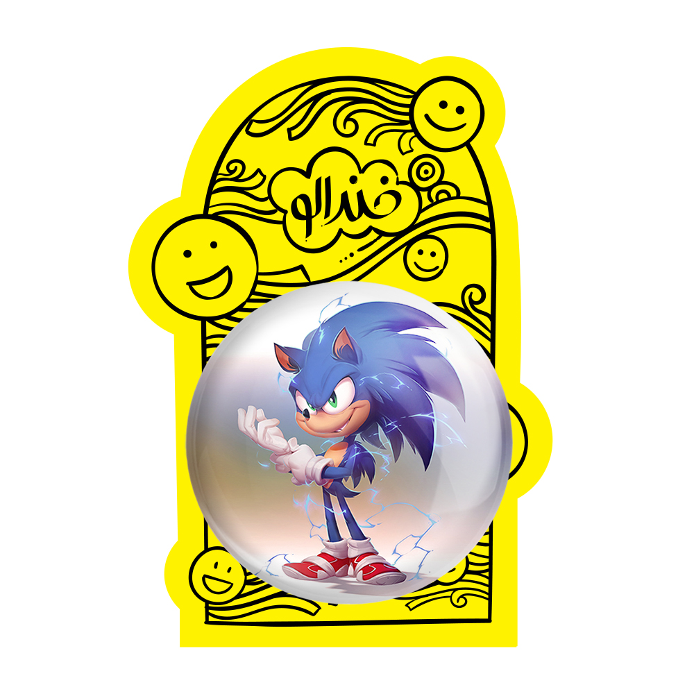 پیکسل بزرگ سونیک (Sonic) خندالو با روکش سلفون حرارتی مات مخملی ضدخش و قطعه پشتی فلزی تولید می شود. قطعات پشت پیکسل های خندالو با سوزن یک تکه ثابت و بدون لغزش و جا به جایی، ایستایی بسیار خوبی دارند که این مهم در تولید پیکسل های 58 میلیمتری نیز رعایت شده است.