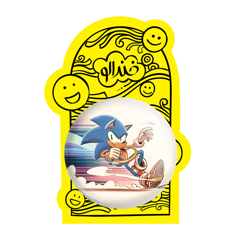 پیکسل بزرگ سونیک (Sonic) خندالو با روکش سلفون حرارتی مات مخملی ضدخش و قطعه پشتی فلزی تولید می شود. قطعات پشت پیکسل های خندالو با سوزن یک تکه ثابت و بدون لغزش و جا به جایی، ایستایی بسیار خوبی دارند که این مهم در تولید پیکسل های 58 میلیمتری نیز رعایت شده است.