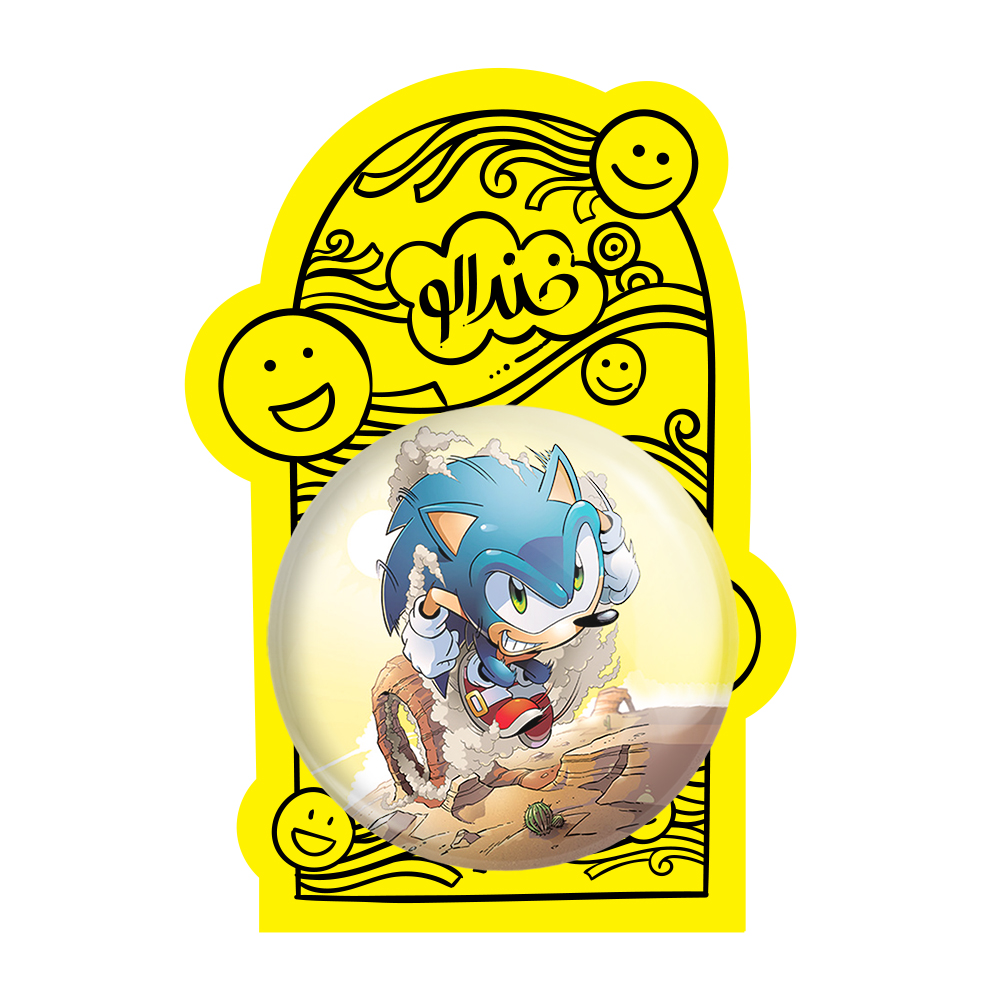پیکسل بزرگ سونیک (Sonic) خندالو با روکش سلفون حرارتی مات مخملی ضدخش و قطعه پشتی فلزی تولید می شود. قطعات پشت پیکسل های خندالو با سوزن یک تکه ثابت و بدون لغزش و جا به جایی، ایستایی بسیار خوبی دارند که این مهم در تولید پیکسل های 58 میلیمتری نیز رعایت شده است.