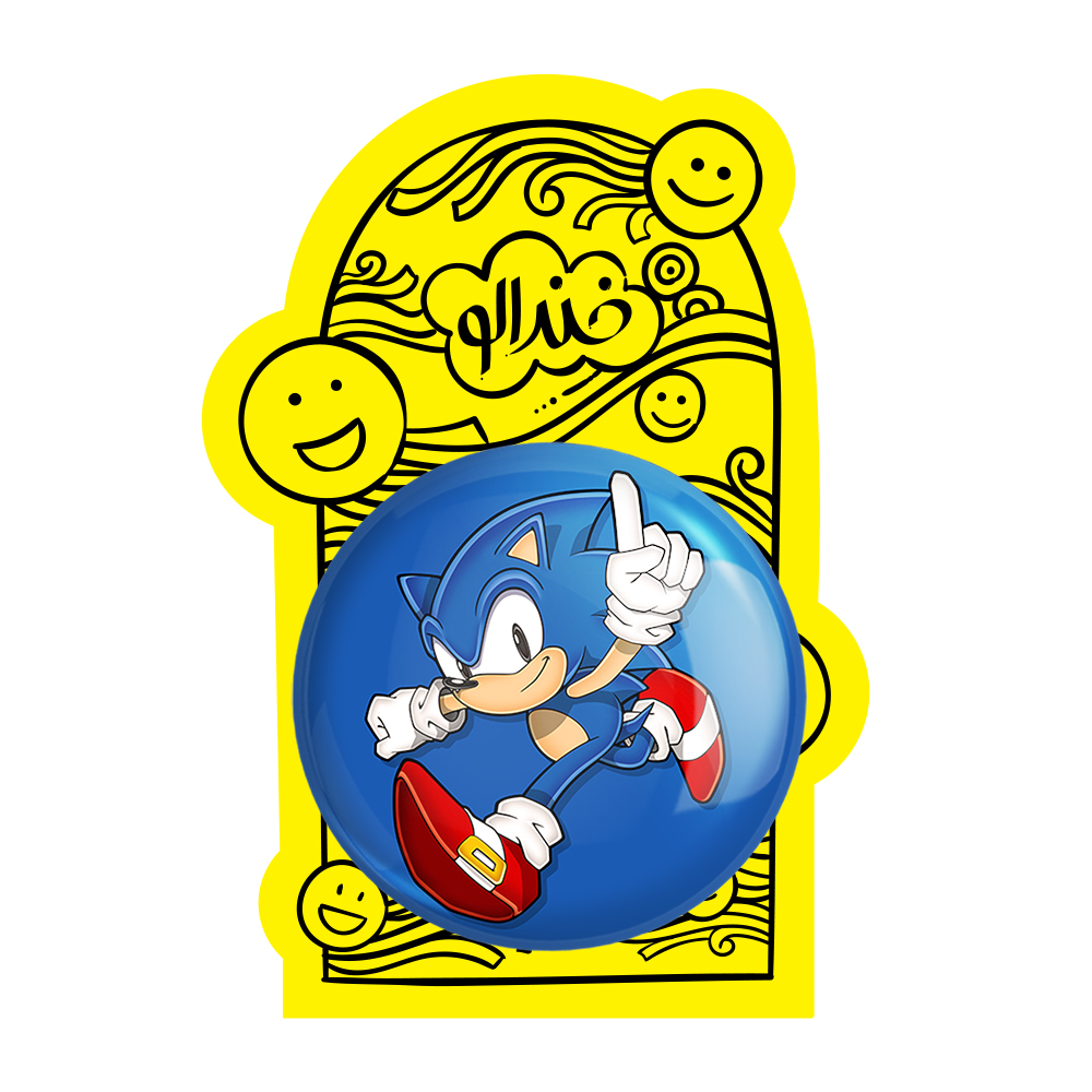 پیکسل بزرگ سونیک (Sonic) خندالو با روکش سلفون حرارتی مات مخملی ضدخش و قطعه پشتی فلزی تولید می شود. قطعات پشت پیکسل های خندالو با سوزن یک تکه ثابت و بدون لغزش و جا به جایی، ایستایی بسیار خوبی دارند که این مهم در تولید پیکسل های 58 میلیمتری نیز رعایت شده است.