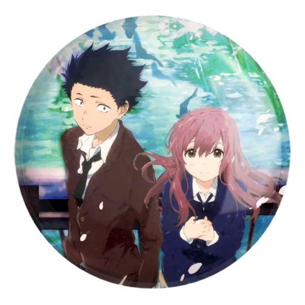 پیکسل بزرگ شوکو نیشیمیا و شویا ایشیدا انیمه سایلنت ویس A Silent Voice خندالو با روکش سلفون حرارتی مات مخملی ضدخش و قطعه پشتی فلزی تولید می شود. قطعات پشت پیکسل های خندالو با سوزن یک تکه ثابت و بدون لغزش و جا به جایی، ایستایی بسیار خوبی دارند که این مهم در تولید پیکسل های 58 میلیمتری نیز رعایت شده است.