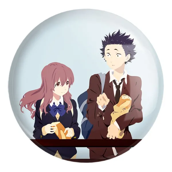پیکسل بزرگ شوکو نیشیمیا و شویا ایشیدا انیمه سایلنت ویس A Silent Voice خندالو با روکش سلفون حرارتی مات مخملی ضدخش و قطعه پشتی فلزی تولید می شود. قطعات پشت پیکسل های خندالو با سوزن یک تکه ثابت و بدون لغزش و جا به جایی، ایستایی بسیار خوبی دارند که این مهم در تولید پیکسل های 58 میلیمتری نیز رعایت شده است.