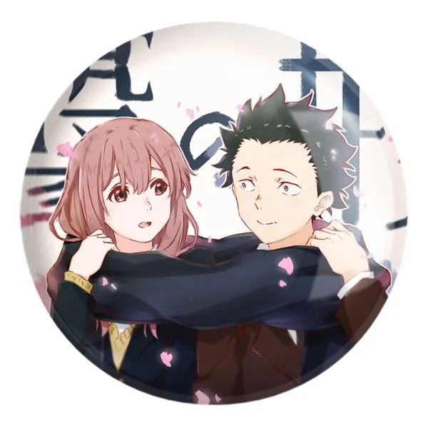 پیکسل بزرگ شوکو نیشیمیا و شویا ایشیدا انیمه سایلنت ویس A Silent Voice خندالو با روکش سلفون حرارتی مات مخملی ضدخش و قطعه پشتی فلزی تولید می شود. قطعات پشت پیکسل های خندالو با سوزن یک تکه ثابت و بدون لغزش و جا به جایی، ایستایی بسیار خوبی دارند که این مهم در تولید پیکسل های 58 میلیمتری نیز رعایت شده است.