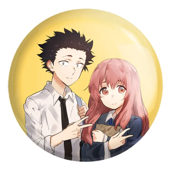 پیکسل بزرگ شوکو نیشیمیا و شویا ایشیدا انیمه سایلنت ویس A Silent Voice خندالو با روکش سلفون حرارتی مات مخملی ضدخش و قطعه پشتی فلزی تولید می شود. قطعات پشت پیکسل های خندالو با سوزن یک تکه ثابت و بدون لغزش و جا به جایی، ایستایی بسیار خوبی دارند که این مهم در تولید پیکسل های 58 میلیمتری نیز رعایت شده است.