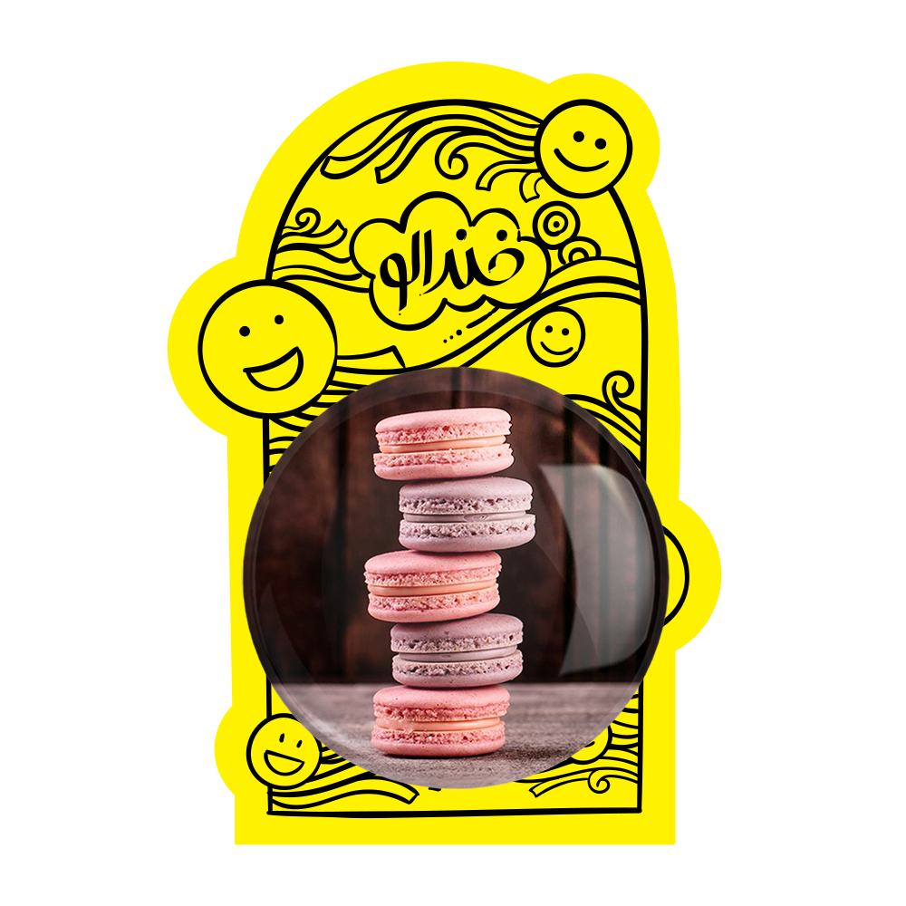 پیکسل بزرگ شیرینی جات خندالو با روکش سلفون حرارتی مات مخملی ضدخش و قطعه پشتی فلزی تولید می شود. قطعات پشت پیکسل های خندالو با سوزن یک تکه ثابت و بدون لغزش و جا به جایی، ایستایی بسیار خوبی دارند که این مهم در تولید پیکسل های 58 میلیمتری نیز رعایت شده است.