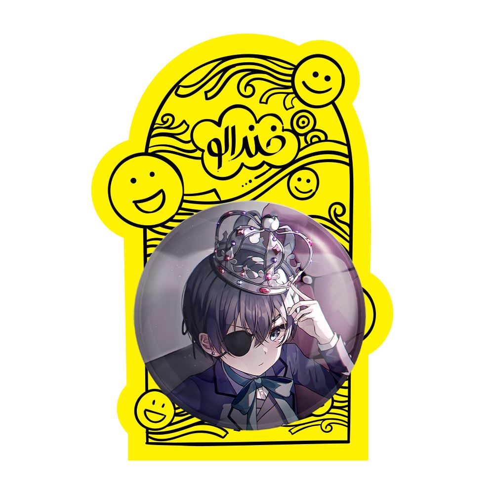 پیکسل بزرگ شیل انیمه خادم سیاه Black Butler خندالو با روکش سلفون حرارتی مات مخملی ضدخش و قطعه پشتی فلزی تولید می شود. قطعات پشت پیکسل های خندالو با سوزن یک تکه ثابت و بدون لغزش و جا به جایی، ایستایی بسیار خوبی دارند که این مهم در تولید پیکسل های 58 میلیمتری نیز رعایت شده است.
