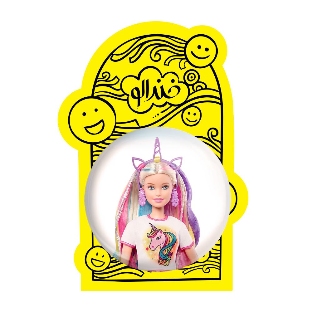 پیکسل بزرگ عروسک باربی خندالو با روکش سلفون حرارتی مات مخملی ضدخش و قطعه پشتی فلزی تولید می شود. قطعات پشت پیکسل های خندالو با سوزن یک تکه ثابت و بدون لغزش و جا به جایی، ایستایی بسیار خوبی دارند که این مهم در تولید پیکسل های 58 میلیمتری نیز رعایت شده است.