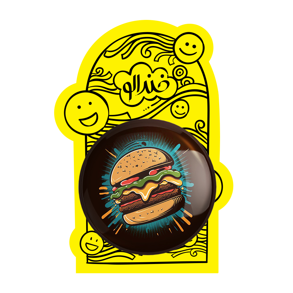 پیکسل بزرگ فست فود خندالو با روکش سلفون حرارتی مات مخملی ضدخش و قطعه پشتی فلزی تولید می شود. قطعات پشت پیکسل های خندالو با سوزن یک تکه ثابت و بدون لغزش و جا به جایی، ایستایی بسیار خوبی دارند که این مهم در تولید پیکسل های 58 میلیمتری نیز رعایت شده است.