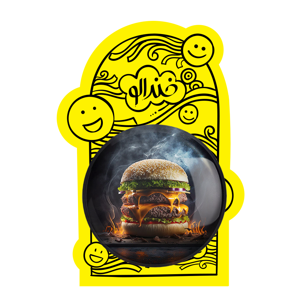 پیکسل بزرگ فست فود خندالو با روکش سلفون حرارتی مات مخملی ضدخش و قطعه پشتی فلزی تولید می شود. قطعات پشت پیکسل های خندالو با سوزن یک تکه ثابت و بدون لغزش و جا به جایی، ایستایی بسیار خوبی دارند که این مهم در تولید پیکسل های 58 میلیمتری نیز رعایت شده است.