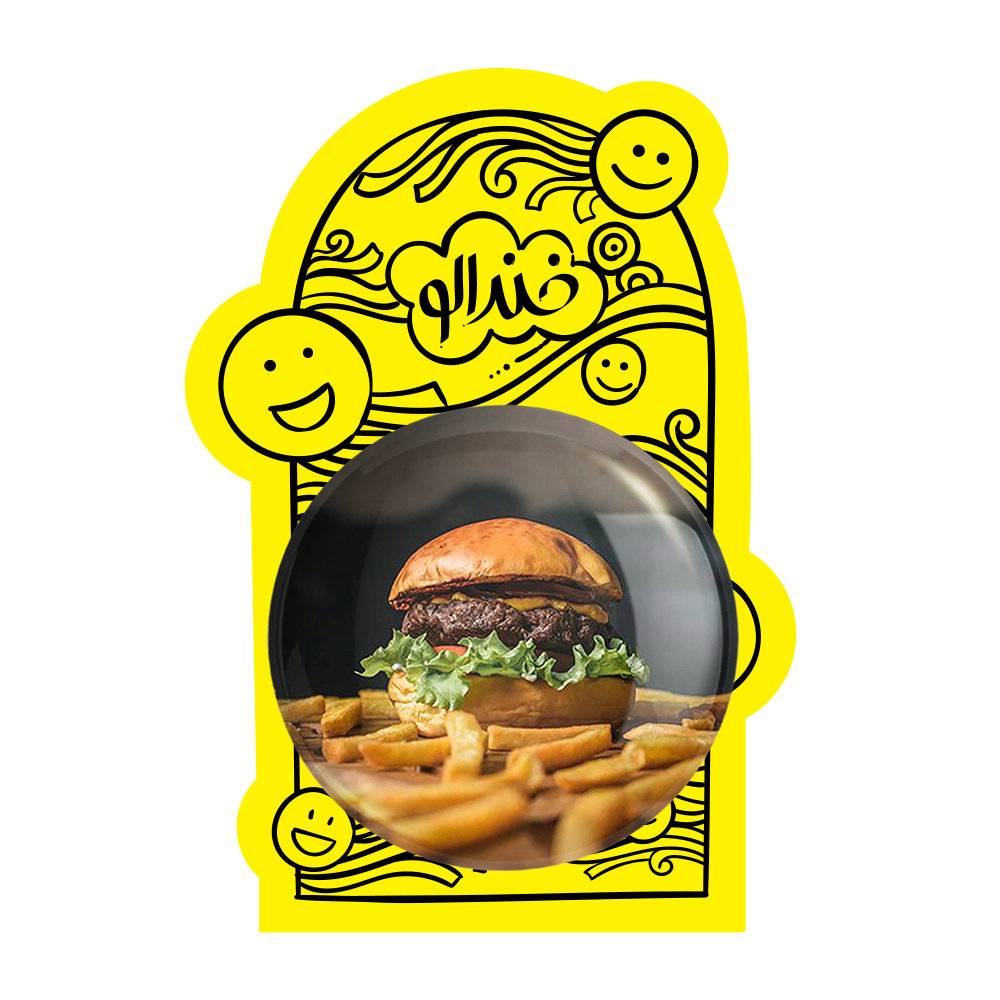 پیکسل بزرگ فست فود خندالو با روکش سلفون حرارتی مات مخملی ضدخش و قطعه پشتی فلزی تولید می شود. قطعات پشت پیکسل های خندالو با سوزن یک تکه ثابت و بدون لغزش و جا به جایی، ایستایی بسیار خوبی دارند که این مهم در تولید پیکسل های 58 میلیمتری نیز رعایت شده است.