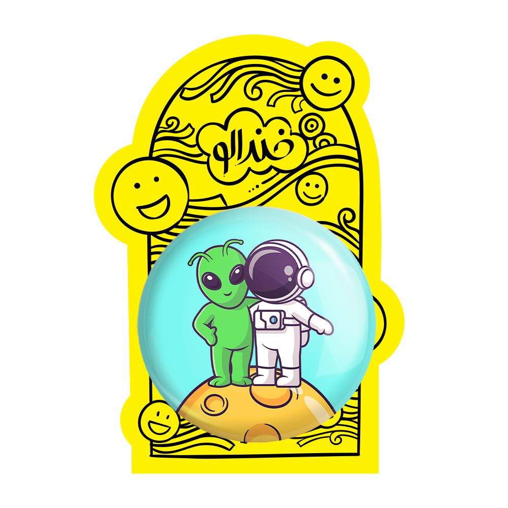 پیکسل بزرگ فضانورد خندالو با روکش سلفون حرارتی مات مخملی ضدخش و قطعه پشتی فلزی تولید می شود. قطعات پشت پیکسل های خندالو با سوزن یک تکه ثابت و بدون لغزش و جا به جایی، ایستایی بسیار خوبی دارند که این مهم در تولید پیکسل های 58 میلیمتری نیز رعایت شده است.