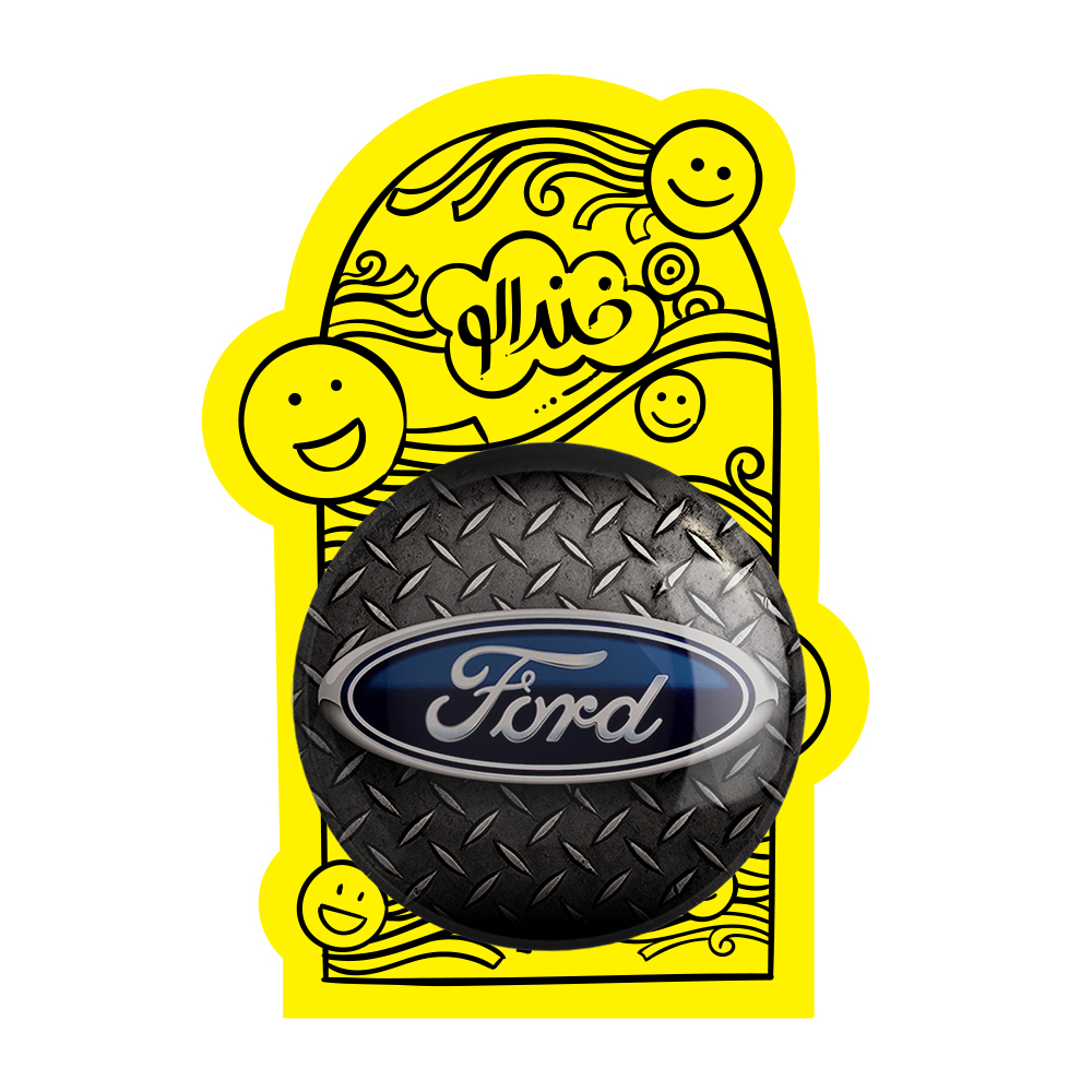 پیکسل بزرگ فورد Ford خندالو با روکش سلفون حرارتی مات مخملی ضدخش و قطعه پشتی فلزی تولید می شود. قطعات پشت پیکسل های خندالو با سوزن یک تکه ثابت و بدون لغزش و جا به جایی، ایستایی بسیار خوبی دارند که این مهم در تولید پیکسل های 58 میلیمتری نیز رعایت شده است.
