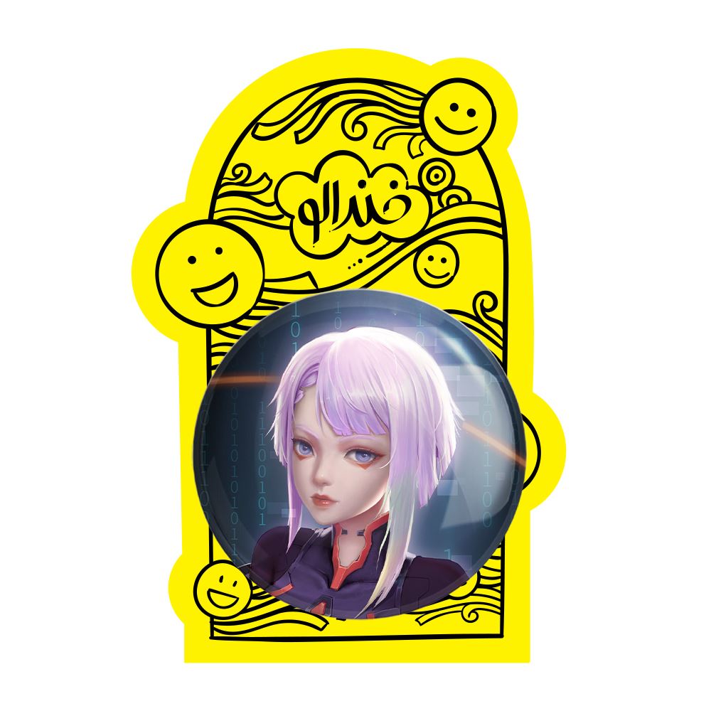 پیکسل بزرگ لوسی انیمه سایبرپانک خندالو با روکش سلفون حرارتی مات مخملی ضدخش و قطعه پشتی فلزی تولید می شود. قطعات پشت پیکسل های خندالو با سوزن یک تکه ثابت و بدون لغزش و جا به جایی، ایستایی بسیار خوبی دارند که این مهم در تولید پیکسل های 58 میلیمتری نیز رعایت شده است.