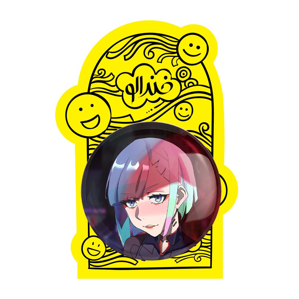 پیکسل بزرگ لوسی انیمه سایبرپانک خندالو با روکش سلفون حرارتی مات مخملی ضدخش و قطعه پشتی فلزی تولید می شود. قطعات پشت پیکسل های خندالو با سوزن یک تکه ثابت و بدون لغزش و جا به جایی، ایستایی بسیار خوبی دارند که این مهم در تولید پیکسل های 58 میلیمتری نیز رعایت شده است.