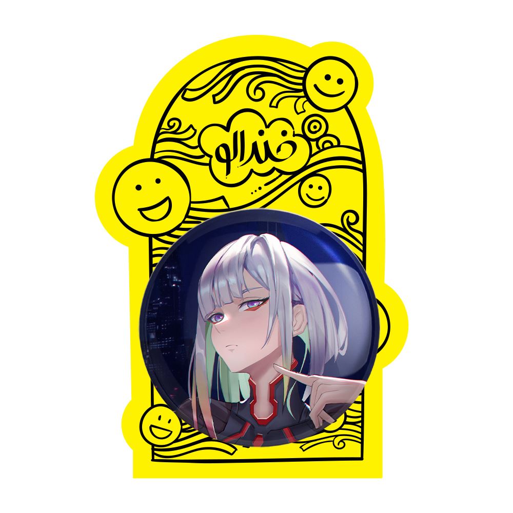 پیکسل بزرگ لوسی انیمه سایبرپانک خندالو با روکش سلفون حرارتی مات مخملی ضدخش و قطعه پشتی فلزی تولید می شود. قطعات پشت پیکسل های خندالو با سوزن یک تکه ثابت و بدون لغزش و جا به جایی، ایستایی بسیار خوبی دارند که این مهم در تولید پیکسل های 58 میلیمتری نیز رعایت شده است.