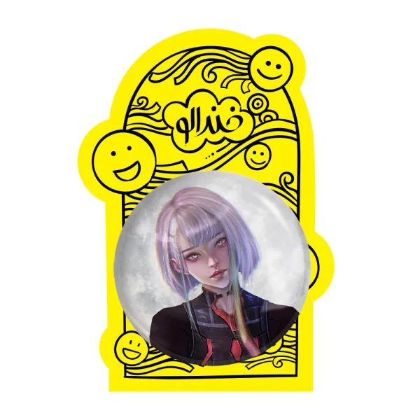 پیکسل بزرگ لوسی انیمه سایبر پانک Cyberpunk خندالو با روکش سلفون حرارتی مات مخملی ضدخش و قطعه پشتی فلزی تولید می شود. قطعات پشت پیکسل های خندالو با سوزن یک تکه ثابت و بدون لغزش و جا به جایی، ایستایی بسیار خوبی دارند که این مهم در تولید پیکسل های 58 میلیمتری نیز رعایت شده است.