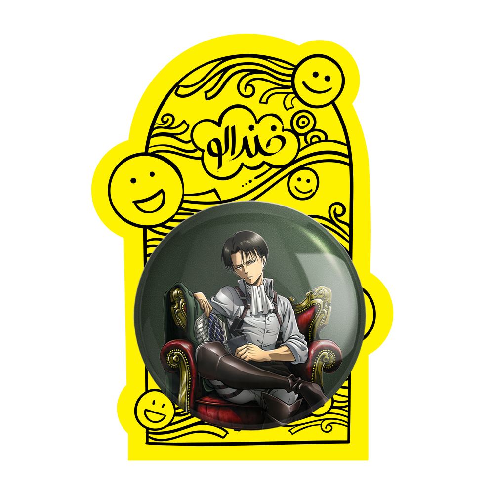پیکسل بزرگ لیوای آکرمن انیمه اتک آن تایتان Attack on Titan خندالو با روکش سلفون حرارتی مات مخملی ضدخش و قطعه پشتی فلزی تولید می شود. قطعات پشت پیکسل های خندالو با سوزن یک تکه ثابت و بدون لغزش و جا به جایی، ایستایی بسیار خوبی دارند که این مهم در تولید پیکسل های 58 میلیمتری نیز رعایت شده است.