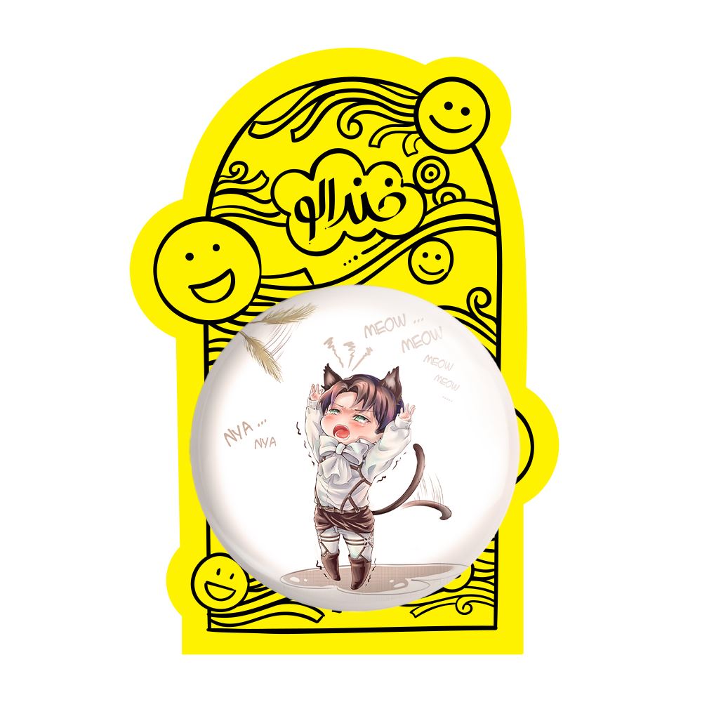 پیکسل بزرگ لیوای انیمه اتک آن تایتان Attack on Titan خندالو با روکش سلفون حرارتی مات مخملی ضدخش و قطعه پشتی فلزی تولید می شود. قطعات پشت پیکسل های خندالو با سوزن یک تکه ثابت و بدون لغزش و جا به جایی، ایستایی بسیار خوبی دارند که این مهم در تولید پیکسل های 58 میلیمتری نیز رعایت شده است.