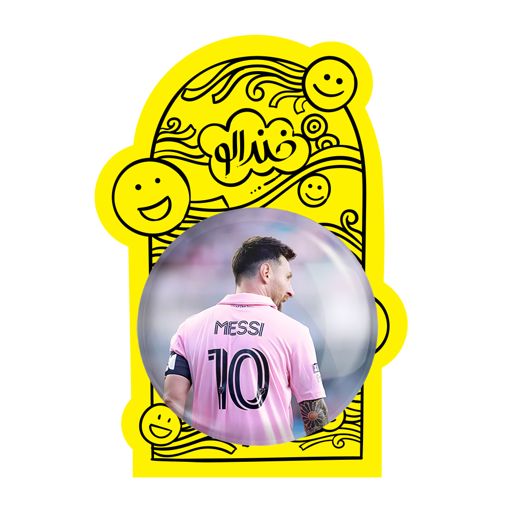 پیکسل بزرگ لیونل مسی خندالو با روکش سلفون حرارتی مات مخملی ضدخش و قطعه پشتی فلزی تولید می شود. قطعات پشت پیکسل های خندالو با سوزن یک تکه ثابت و بدون لغزش و جا به جایی، ایستایی بسیار خوبی دارند که این مهم در تولید پیکسل های 58 میلیمتری نیز رعایت شده است.