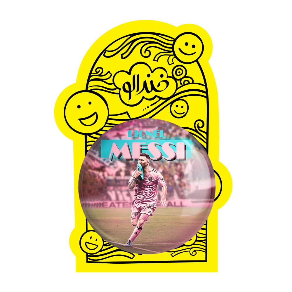 پیکسل بزرگ لیونل مسی خندالو با روکش سلفون حرارتی مات مخملی ضدخش و قطعه پشتی فلزی تولید می شود. قطعات پشت پیکسل های خندالو با سوزن یک تکه ثابت و بدون لغزش و جا به جایی، ایستایی بسیار خوبی دارند که این مهم در تولید پیکسل های 58 میلیمتری نیز رعایت شده است.